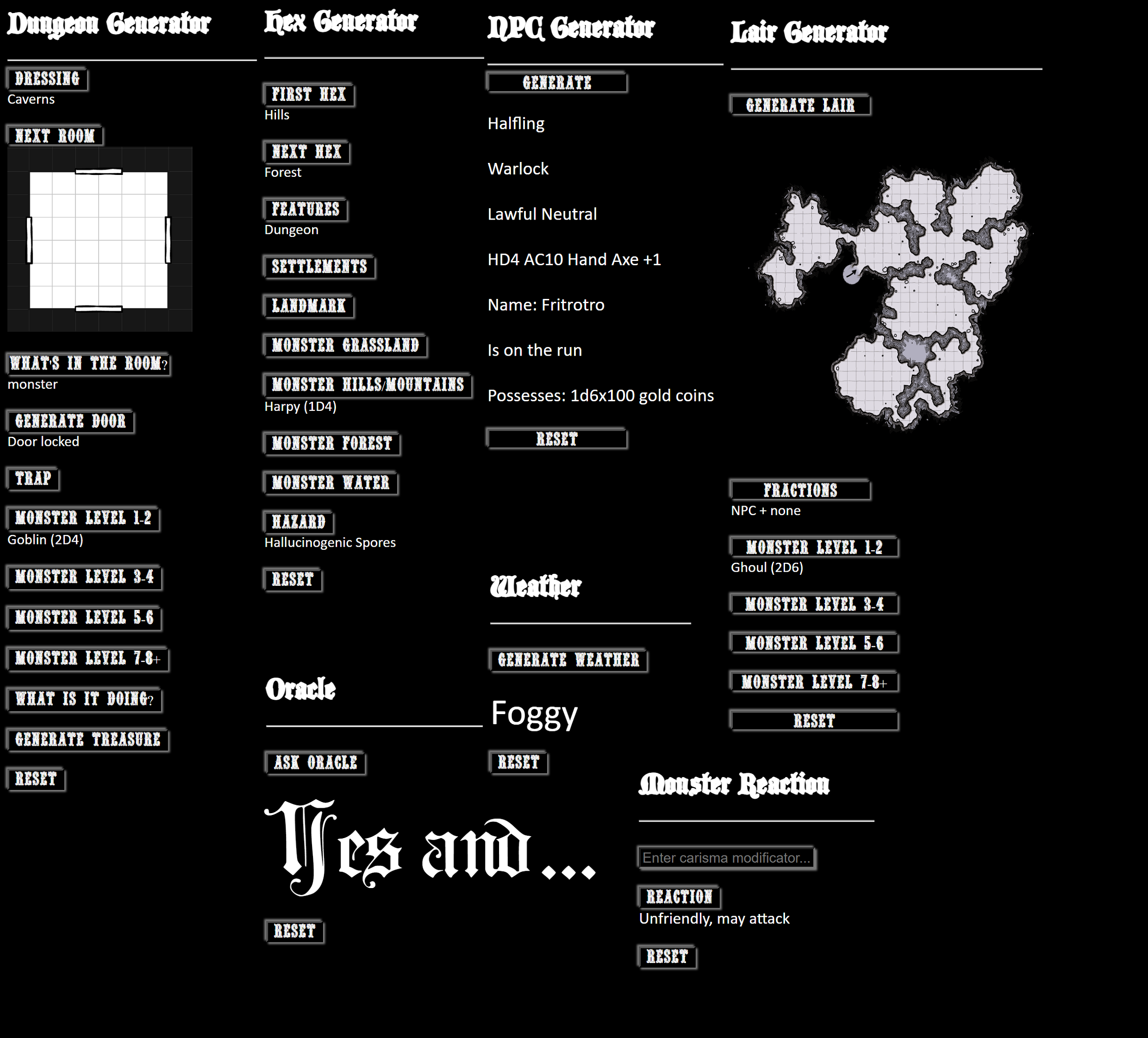 It has a hex crawl and dungeon crawl generator. NPCs and other creatures can also be created quickly.